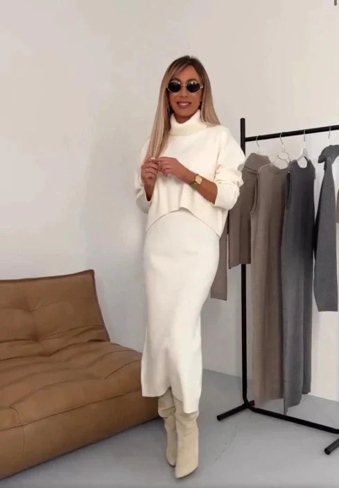 • Stilizovani komplet od 2 dela – džemper i midi suknja
